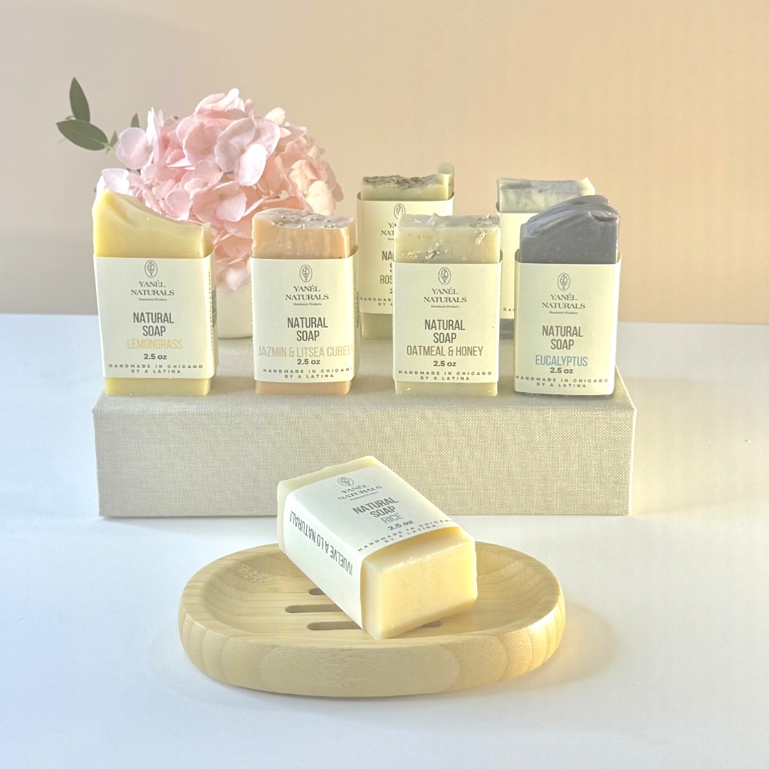 Our Artisan Soap Sample Box is the perfect way to explore our collection. It includes 8 different handcrafted soaps, approximately 2.5 oz each, all individually labeled. Soap selections are chosen at random, making every box unique. If you have a preferred selection, you may leave your request in the notes at checkout, and we will do our best to accommodate it.